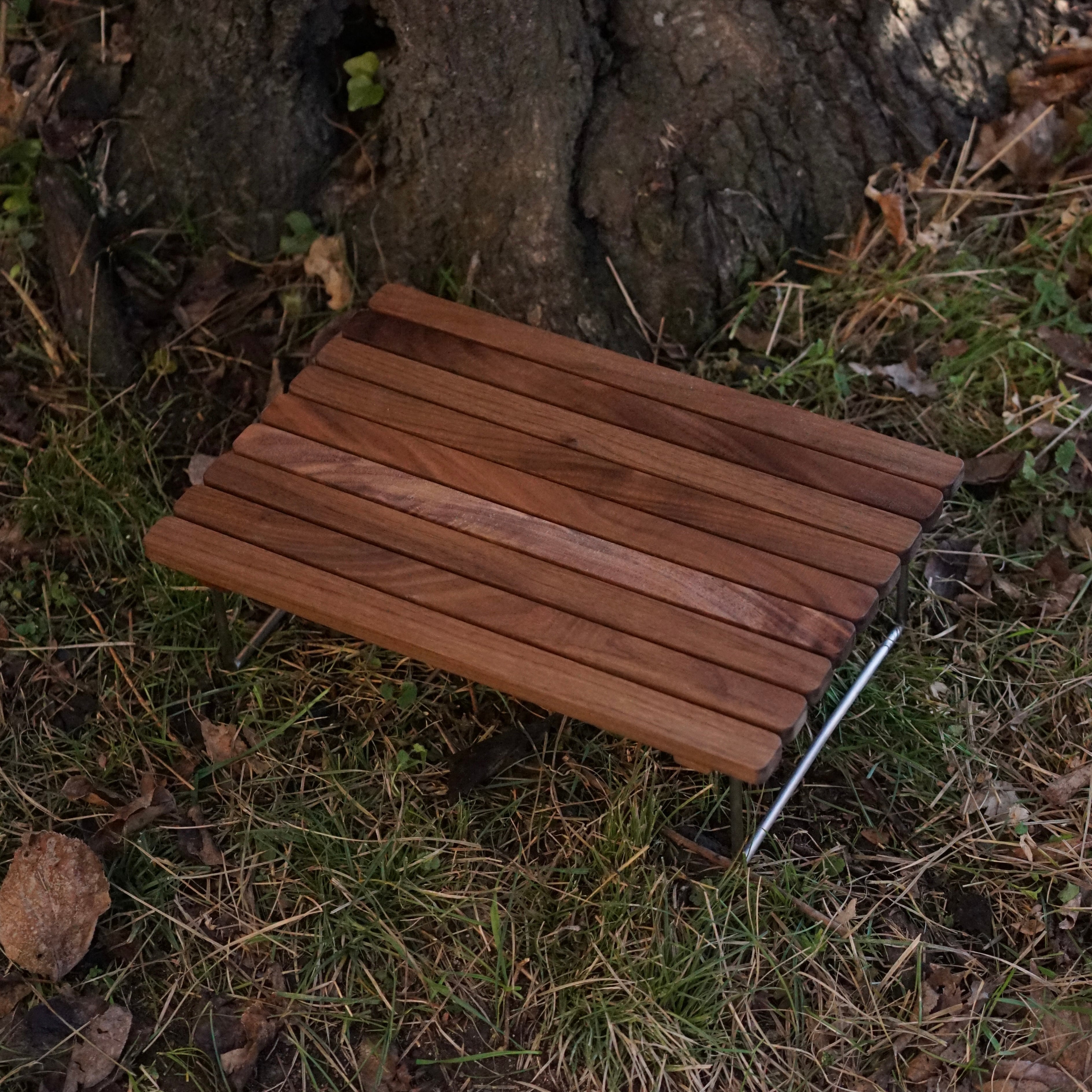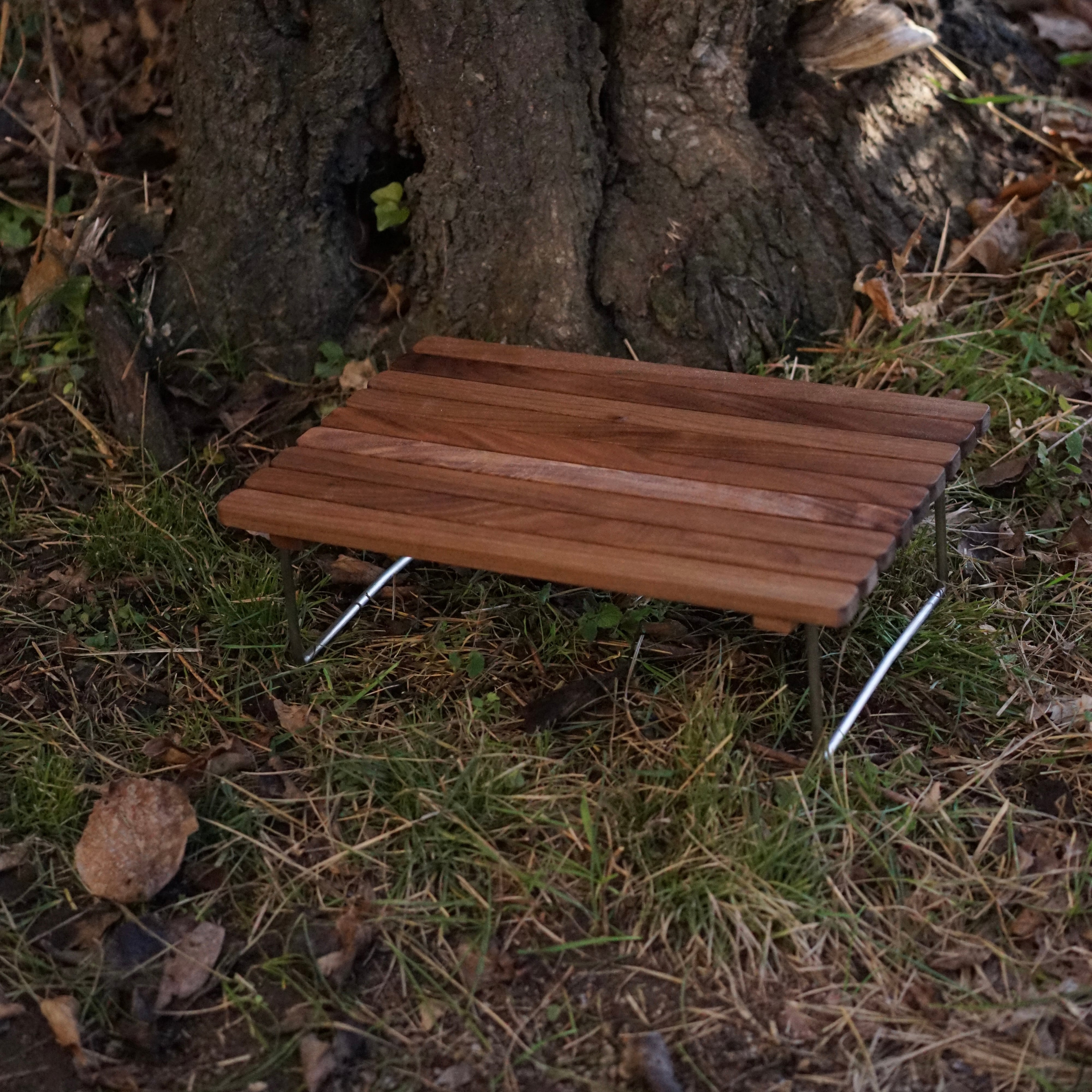 ステンレスの脚をはめてミニテーブルとしても使えます。