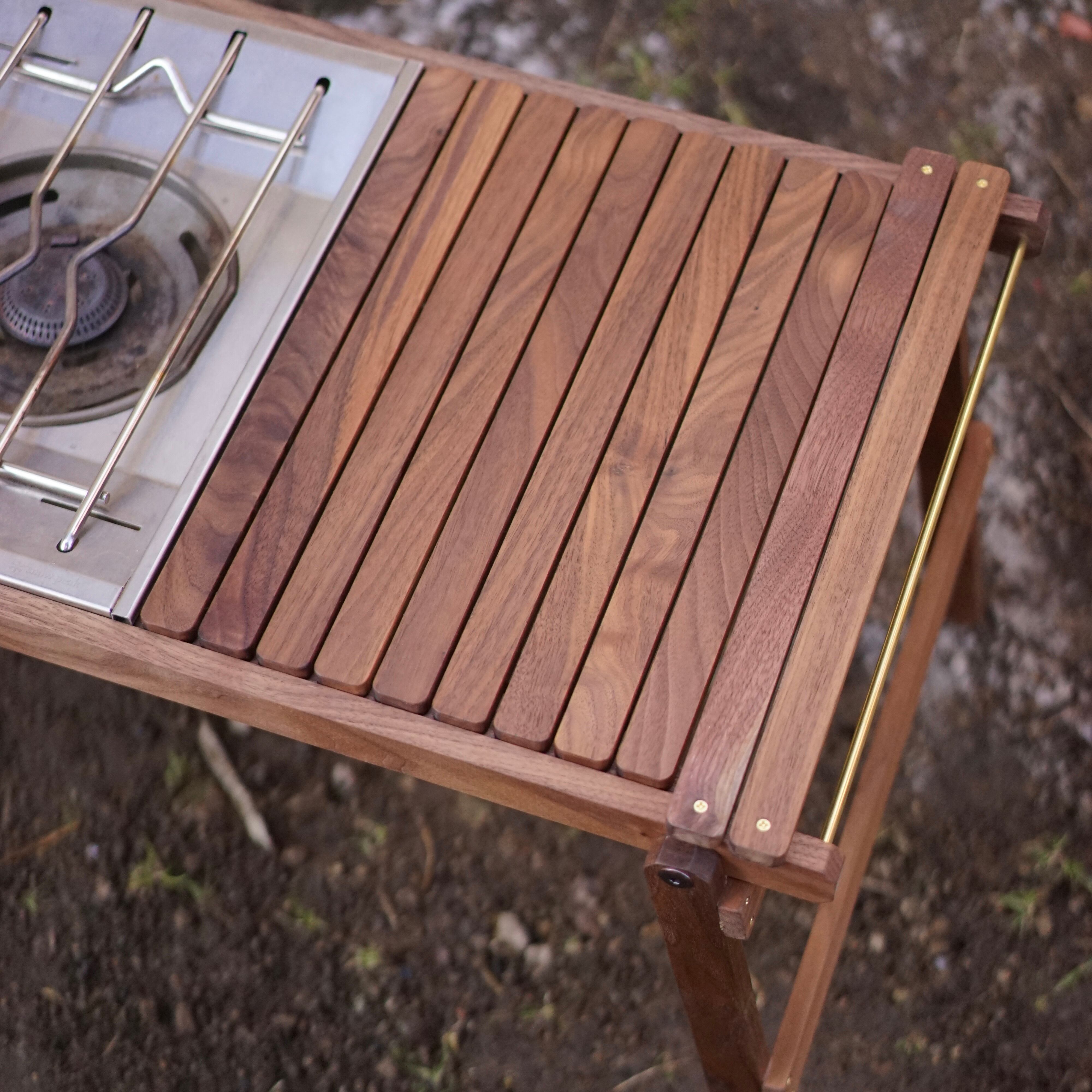 銘木ウォールナット無垢材を使用したフォールディングテーブル。