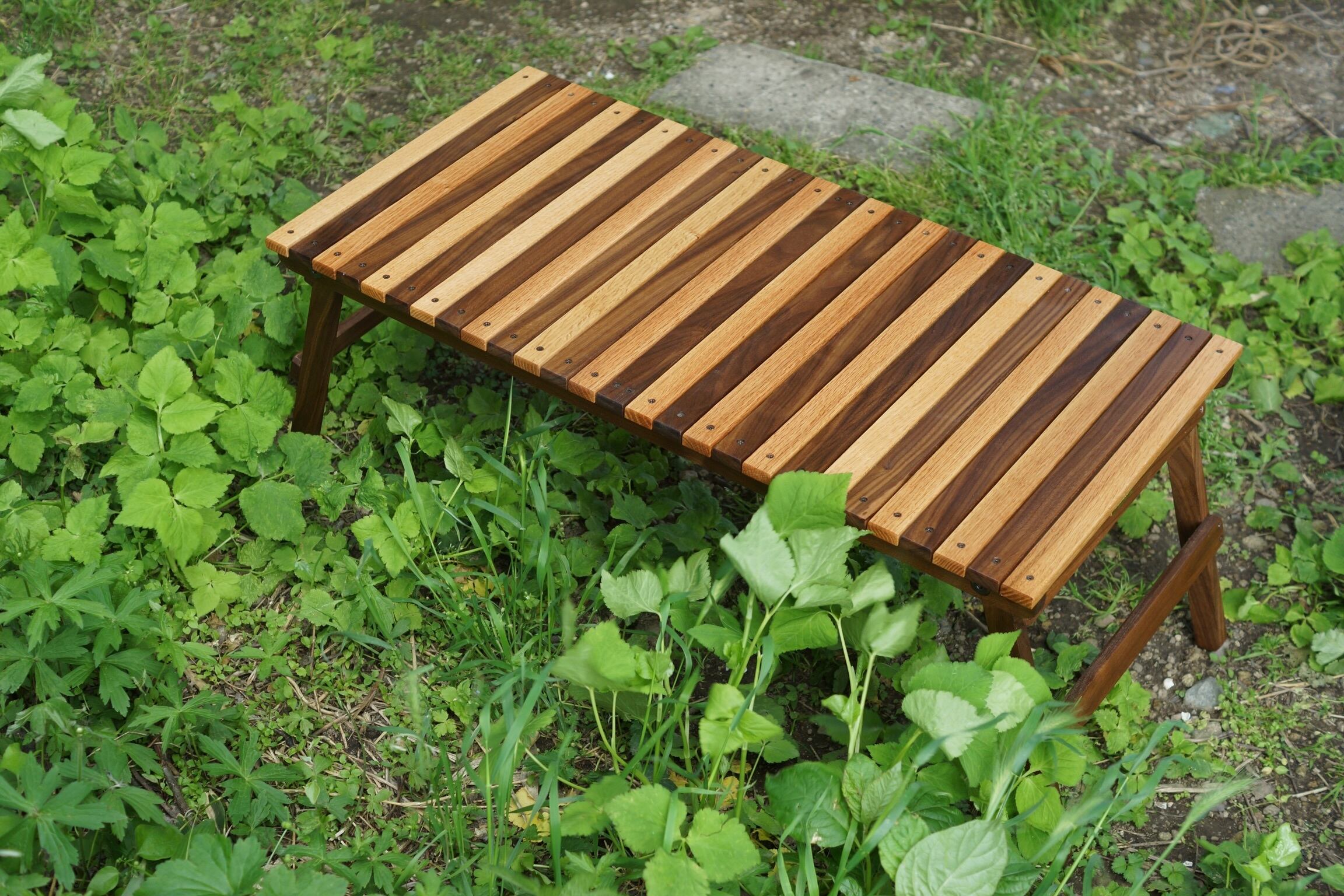 ウォールナットとレッドオーク無垢材を使用したフォールディングテーブルになります。